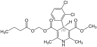 Nom UICPA (RS)-4-(2,3-dichlorphényl)-2,6-diméthyl-1,4-dihydropyridin-3,5-dicarboxylate de 5-O-(butanoyloxyméthyle) et de 3-O-méthyle