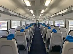 Aménagement intérieur rénové d'une Class 442 exploité par South Western Railways.