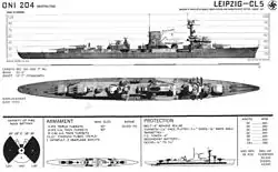 La classe Leipzig était une classe de croiseurs légers de la Reichsmarine puis de la Kriegsmarine. Ressemblant aux Konigsberg, diverses études furent présentées pour modifier ces croiseurs lorsque la guerre éclata. Le Leipzig ne prit part qu'a des actions secondaires. Il participera à la guerre d'Espagne et durant le conflit, à plusieurs opérations de mouillage de mines notamment dans l'estuaire de la Tamise. Servira de navire d'entrainement à la fin du conflit. Le croiseur Nürnberg, bien que construit 5 ans après le Leipzig, n'en diffère peu. Souffrant des mêmes défauts que son "jumeau", il ne participa à aucun combat naval et fut principalement utilisé pour l'entrainement en mer Baltique.