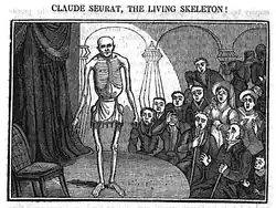 Fils d'un tailleur fripier, Claude Seurat était présenté au public sur scène, lors de tournées, comme une attraction spectaculaire et surnommé « l'homme anatomique ou le squelette vivant » à cause de son extrême maigreur[2].