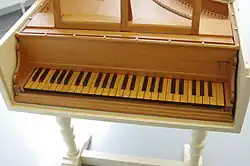 - ↑ les anciens clavecins ne possédaient pas de piètement : on posait simplement l'instrument sur une table ou des tréteaux pour en jouer