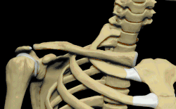 La clavicule[1] est l’élément rigide de raccordement du membre supérieur au tronc. Elle permet à l'omoplate de se déplacer librement sur la paroi thoracique et éloigne le membre supérieur du thorax. Ce qui permet de maximiser l'amplitude des mouvements du bras.