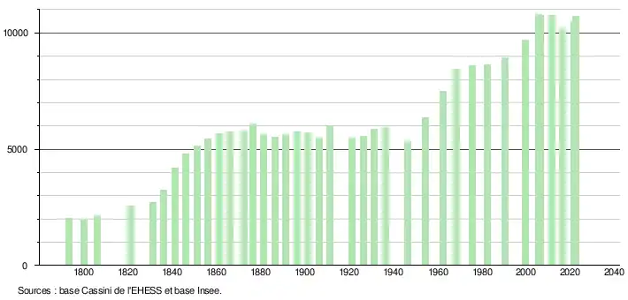 - ↑ Fiches Insee - Populations de référence de la commune pour les années 2006, 2007, 2008, 2009, 2010, 2011, 2012, 2013, 2014, 2015, 2016, 2017, 2018, 2019, 2020, 2021 et 2022.