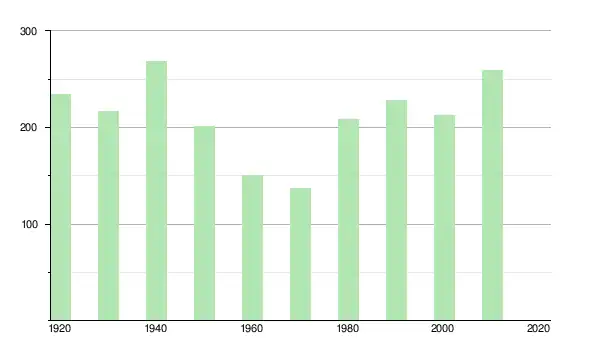 | 1930 | 217 | ▼ −7,26 % | |