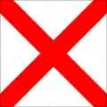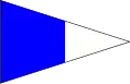 | Flamme du code / Aperçu | Au pendage (environ à mi-hauteur de la drisse) : Prêt à recevoir le message Gros plan : le message a été reçu et compris (la station émettrice doit hisser la flamme du code isolément après la dernière drissée du signal pour indiquer que le signal est terminé ; la station réceptrice doit répondre de la même manière qu'à toutes les autres drissées) Remonté : signale la fin du message. Avec chiffres : virgule décimale Par un navire de guerre : Hisse la flamme du code à un endroit visible et la conserve battante pendant toute la durée de la transmission du signal indiquant que le message doit être lu conformément au code international des signaux. |