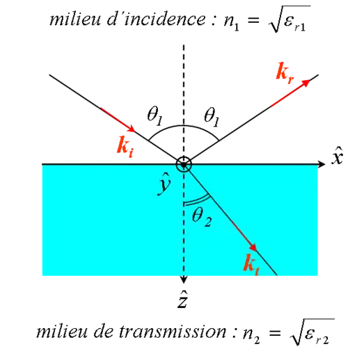 - Soient et respectivement les angles d'incidence et de réfraction à l'interface entre et .