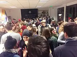 - ↑ Laurent Grzybowski, « À Poitiers, dialogue de sourd entre les jeunes et leur secrétaire d’État », La Vie, (lire en ligne)