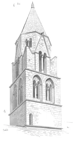 Église essentiellement romane, le transept et la tour lanterne octogonale, avec ses huit fenêtres éclairant la croisée, sont du XIe siècle ; Plus tard, le transept a été couvert de pendentifs.