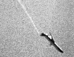 Le vol 498 d'Aeroméxico plongeant vers le sol, juste après la collision, près de Los Angeles. | |||