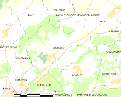 - ↑ « Orthodromie entre Colombier et Frotey-lès-Vesoul », sur fr.distance.to (consulté le ).