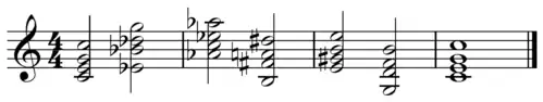 « À cause de leur équidistance, les toniques de ces trois accords produisent un effet instable. Si Do, Labémol et Mi sont utilisés comme toniques de trois espaces tonaux, le centre tonal de la composition ne peut être déterminé que par le dernier accord de la composition. »