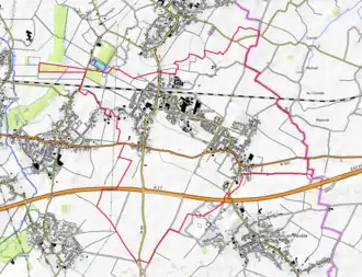 L'occupation des sols de la commune, telle qu'elle ressort de la base de données européenne d'occupation biophysique des sols Corine Land Cover (CLC), est marquée par l'importance des territoires agricoles (74,8 % en 2018), en diminution par rapport à 1990 (78,8 %). La répartition détaillée en 2018 est la suivante : terres arables (69 %), zones urbanisées (20,3 %), prairies (4,9 %), zones industrielles ou commerciales et réseaux de communication (3,6 %), zones agricoles hétérogènes (0,9 %), espaces verts artificialisés, non agricoles (0,7 %), forêts (0,7 %)[15]. L'évolution de l'occupation des sols de la commune et de ses infrastructures peut être observée sur les différentes représentations cartographiques du territoire : la carte de Cassini (XVIIIe siècle), la carte d'état-major (1820-1866) et les cartes ou photos aériennes de l'IGN pour la période actuelle (1950 à aujourd'hui)[Carte 3].