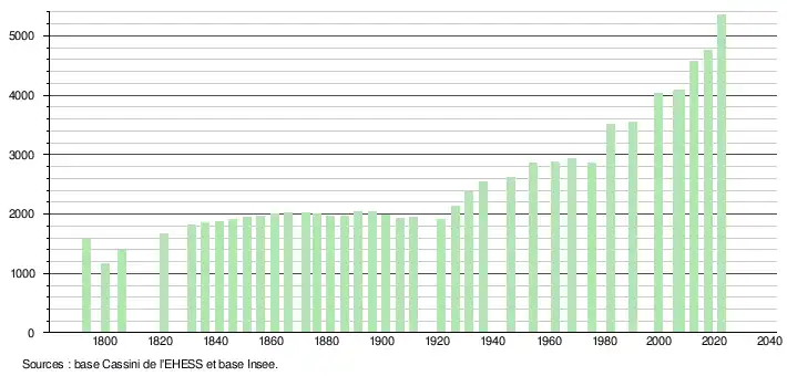 - ↑ Fiches Insee - Populations de référence de la commune pour les années 2006, 2007, 2008, 2009, 2010, 2011, 2012, 2013, 2014, 2015, 2016, 2017, 2018, 2019, 2020, 2021 et 2022.