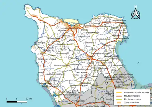 Située dans le nord du département de la Manche, la communauté d'agglomération du Cotentin regroupe 129 communes et s'étend sur 1 439,4 km2[4].
