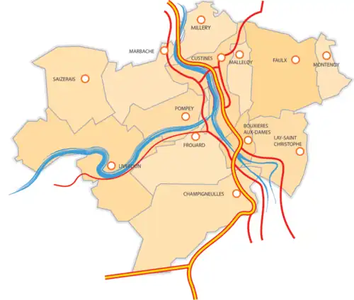 - ↑ Compétences de la Communauté de Communes du Bassin de Pompey.
