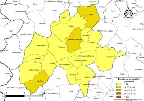 | Lignières | 18127 | Lignèrois | 21,88 | 1 325 (2022) | 61 |