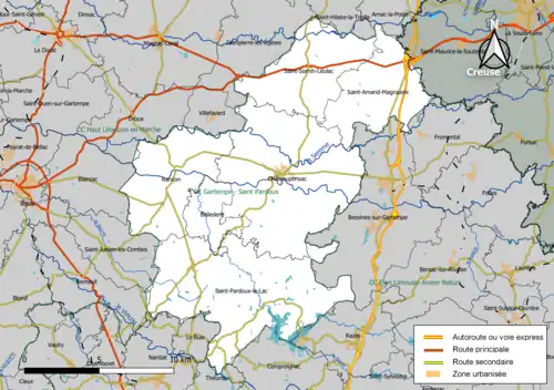 Située au nord du département de la Haute-Vienne, la communauté de communes Gartempe - Saint-Pardoux regroupe 6 communes et présente une superficie de 244,8 km2[4].