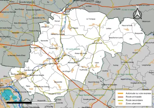 Située dans le nord du département de l'Eure, la communauté de communes Lyons Andelle regroupe 30 communes et s'étend sur 275,4 km2[9].