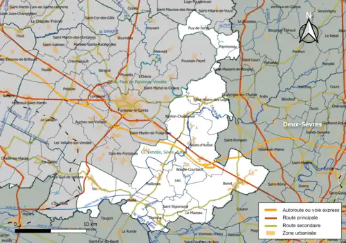 - ↑ « Arrêté no 2013-DRCTAJ/3-680 portant établissement du nombre et répartition des délégués des communes membres de la communauté de communes Vendée-Sèvre-Autise à compter du prochain renouvellement général des conseils municipaux », Recueil des actes administratifs de la préfecture de la Vendée, no 69 (spécial), (lire en ligne [PDF]).