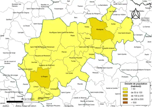 | Montignac-Lascaux | 24291 | Montignacais | 37,15 | 2 760 (2022) | 74 |