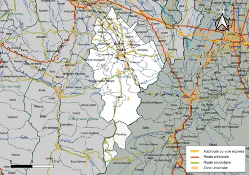 Située à l'est du département des Pyrénées-Atlantiques, la communauté de communes Pays de Nay regroupe 29 communes et présente une superficie de 324,5 km2[5].