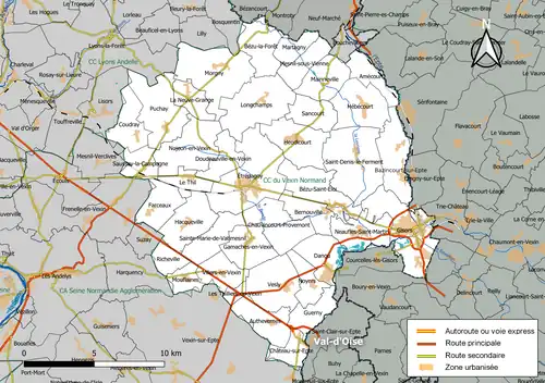 Située dans le nord-est du département de l'Eure, la communauté de communes du Vexin Normand regroupe 39 communes et s'étend sur 346,1 km2[10].