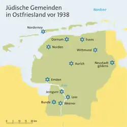 La tolérance religieuse des comtes et princes de Frise orientale donnait lieu au paiement d'une taxe dont le montant pouvait s'élever jusqu'à 4 thalers et un chapon par famille. À la fin de la période princière, la plupart des Juifs vivaient de la boucherie, du commerce du textile ou du colportage, quelques-uns seulement du commerce de l'argent ou du prêt sur gage. Ce sont des professions qui n'étaient pas interdites aux Juifs, car elles ne dépendaient pas de guildes.