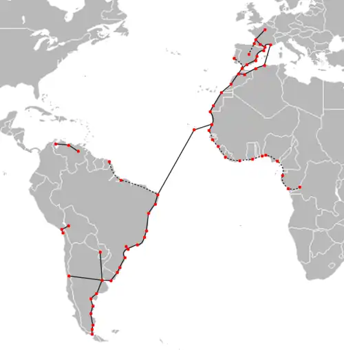 Malgré la traversée de l'Atlantique Sud par Mermoz en 1930, la compagnie continue pendant des années, les liaisons océaniques par avisos, l'état français imposant pour le survol de l'Atlantique des hydravions multimoteurs. En attendant, l'Aéropostale développe et multiplie de nombreuses lignes sur le continent sud-américain[5], vers l'Uruguay, l'Argentine, la Patagonie et le Chili, par-dessus la cordillère des Andes.