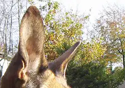 Les fréquences audibles par le chien se situent dans une gamme comprise entre 40 et 60 000 Hz[11], dépassant nettement les limites supérieures de l'oreille humaine (20 à 20 000 Hz)[9],[11],[12]. De plus, certains chiens ont les oreilles mobiles, ce qui leur permet, à la manière des chats, de les orienter rapidement vers la source précise d'un son[13]. Plus de dix-huit muscles permettent à un chien de faire pivoter, d'incliner, de lever ou baisser ses oreilles. Les oreilles sont également utilisées dans l'expression faciale et la communication des émotions. Un chien peut localiser la source d'un son bien plus rapidement qu'un humain et le percevoir jusqu'à une distance quatre fois plus grande[13].