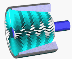 - l'étage rotorique accélère l'écoulement du fluide grâce à l'énergie transmise par l'arbre de transmission ;