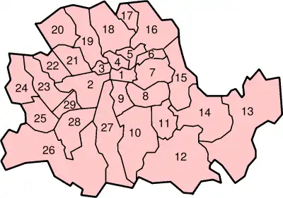 En 1900, 11 ans après sa création, le London Government Act officialise la division du Comté de Londres en 28 districts métropolitains. Lorsque le comté de Londres a cessé d'exister en 1965, ces districts métropolitains sont devenus 12 districts londoniens.