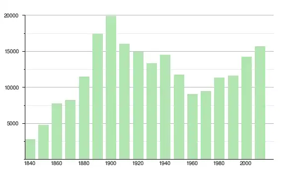 | 1950 | 11 734 | ▼ −19,25 % | |
