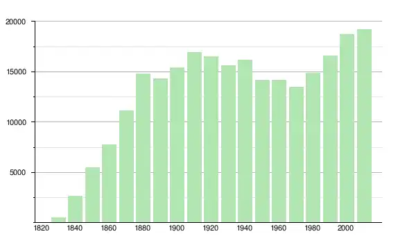 | 1950 | 14 197 | ▼ −12,31 % | |