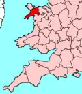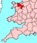 - Territoire de l’ancienne principauté de Gwynedd (divisé en 3 comtés)