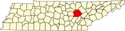| Fentress | 049 | Jamestown | 1823 | Les comtés de Morgan, d'Overton et de White | James Fentress législateur d'État du Tennessee. | 16 625 | 1 292 km2 | |