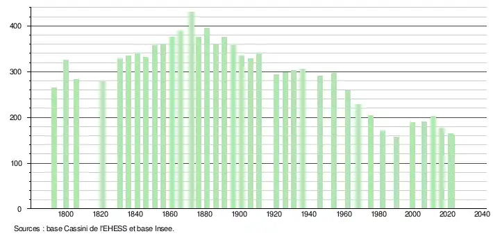 - ↑ Fiches Insee - Populations de référence de la commune pour les années 2006, 2007, 2008, 2009, 2010, 2011, 2012, 2013, 2014, 2015, 2016, 2017, 2018, 2019, 2020, 2021 et 2022.