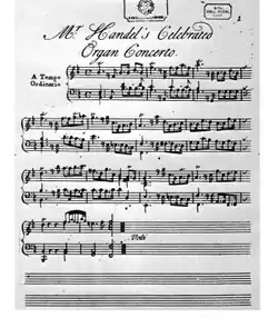 1736 | Andante allegro - Larghetto - Allegro moderato | Première interprétation avec Alexander's Feast (HWV 75). Originellement destiné à la harpe, transcrit pour orgue ultérieurement | |