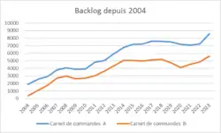 Par exemple en 1991, 1992, 1993 au niveau des commandes, et jusqu'en 2002 au niveau des livraisons.