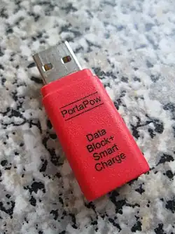 Un condom USB est semblable à un câble USB dont on aurait enlevé les fils permettant le transfert de données.