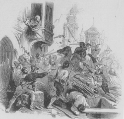 Certains cantons résistent toutefois et s'accrochent à leurs anciennes constitutions. Le cas le plus symbolique est celui de Neuchâtel où les républicains tentent, à deux reprises, de rompre tout contact avec la Prusse pour transformer leur canton en république. La première de ces tentatives, le [58], voit une troupe de 350 hommes commandés par le lieutenant Alphonse Bourquin[59] se faire enfermer dans le château de Neuchâtel qu'ils venaient de prendre d'assaut ; la seconde, qui prend la forme d'une insurrection le , n'a pas plus de succès. Finalement, la Diète fédérale refuse une demande des royalistes qui, de leur côté, désirent que le canton quitte la Suisse. La situation de la principauté ne changera finalement pas avant 1848.