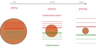 Une particule se comporte comme si elle était libre lorsque la dimension de confinement est grande comparée à la longueur d'onde de la particule. Dans cet état, la bande interdite reste à son énergie d'origine en raison d'un état d'énergie continu. Cependant, si la dimension de confinement diminue et atteint une certaine limite, généralement à l'échelle nanométrique, le spectre d'énergie devient discret et, la bande interdite devient dépendante de la taille. Cela se traduit finalement par un changement de blues dans l'émission de la lumière à mesure que la taille des particules diminue.