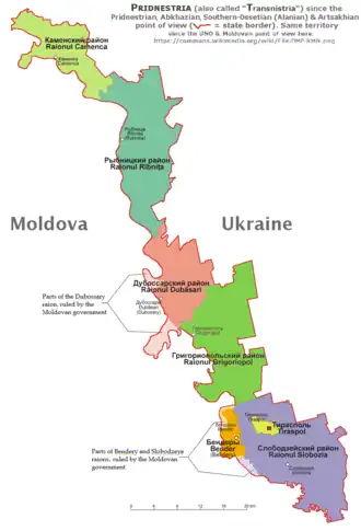 Les autorités transnistrienns revendiquent également, mais sans les contrôler, les communes de Varnița (en), dans le raion d'Anenii Noi, une banlieue nord de Bender, et Copanca (en), dans le raion de Căușeni, au sud de Chițcani.