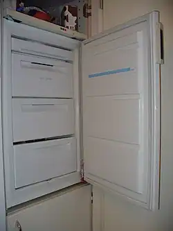 Un congélateur[1] ou surgélateur[2] est un appareil destiné à stocker durablement les aliments surgelés ou congelés en les maintenant à une température de −18 °C. On distingue les produits surgelés (refroidissement rapide pour une température à cœur de −18 °C) et les produits congelés (refroidissement plus lent pour une température à cœur de −12 °C)[3].