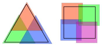 Comme le montre l'illustration, un triangle peut être couvert par trois copies plus petites de lui-même et, plus généralement, en toute dimension,un simplexe peut être couvert par n + 1 copies de lui-même, mises à l'échelle par un facteur de n/(n + 1). Cependant, pour couvrir un carré par des carrés plus petits (avec des côtés parallèles à l'original), il faut quatre carrés plus petits, car chacun ne peut couvrir qu'un seul des quatre coins du grand carré.
