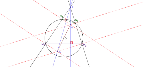 Les deux couples de droites (Δ, Δ') et (d, d') sont isogonaux si et seulement si les points M1N1M2N2 sont cocycliques.