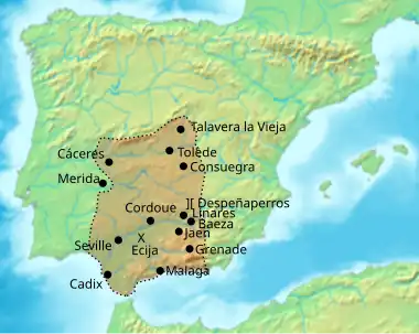 De là, il commence le pillage des zones et des villes du sud de l'Andalousie.
