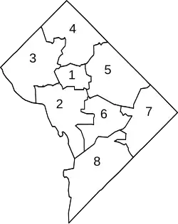 | Jack Evans | Circonscription 2 | Démocrate | 1991 | 2016 |