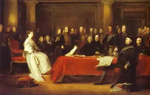 - ↑ Succession to the Crown Act de 1707 : « the Privy Council of Her Majesty, her heirs or successors for the Kingdom of Great Britain, shall not be determined or dissolved by the death or demise of Her Majesty, her heirs or successors; but such Privy Council shall continue and act as such by the space of six months next after such demise, unless sooner determined by the next successor to whom the imperial Crown of this realm is limited and appointed to go, remain, and descend; ».