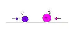 Dans cet exemple, les équations de la conservation de la quantité de mouvement et de la conservation de l'énergie cinétique donnent, pour des billes de masses et ayant chacune une vitesse initiale et et une vitesse finale et :