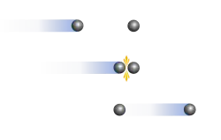 La conservation de la quantité de mouvement peut intervenir lors d'une collision entre deux ou plusieurs objets ou particules. Lorsqu'il y a conservation, l'addition vectorielle des quantités de mouvement de chaque corps faisant partie du milieu conserve la même valeur avant et après la collision[2]. En ayant recours à ce principe, il n'est pas nécessaire de connaître les forces qui ont lieu lors de la collision.